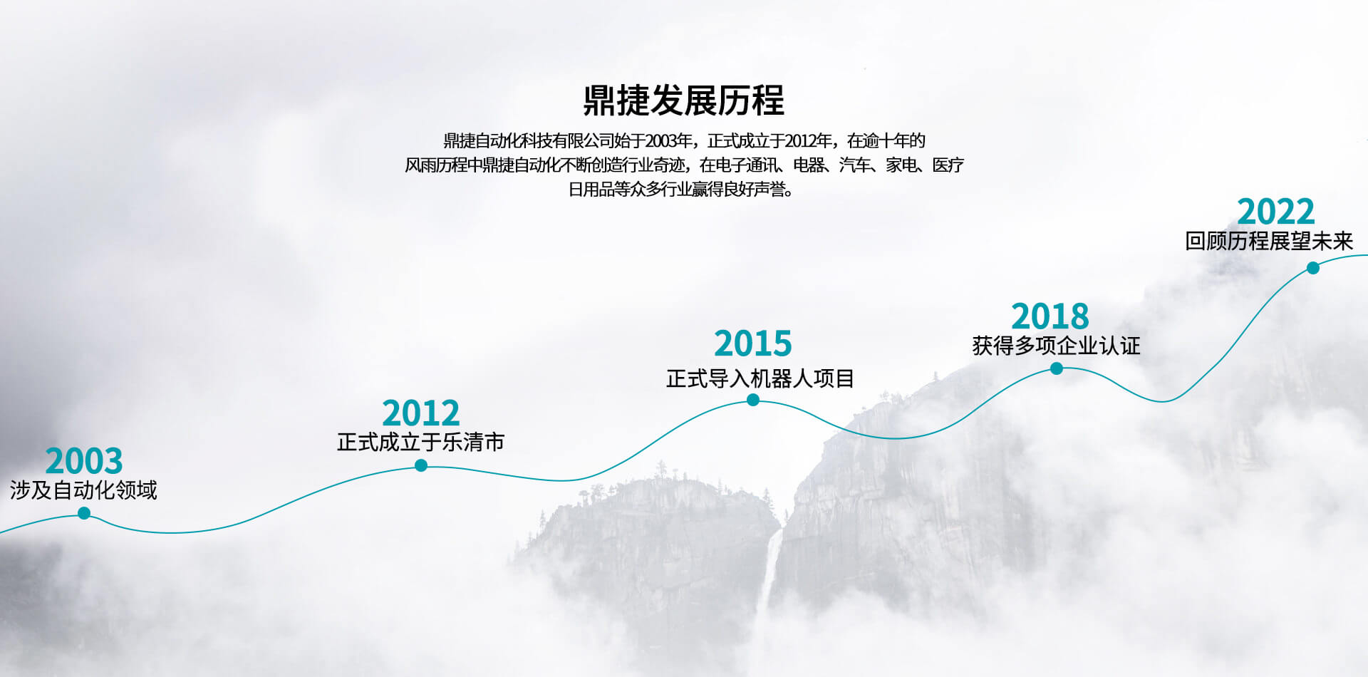 公司始于2012年,在逾十年的風(fēng)雨歷程中,不斷創(chuàng)造行業(yè)奇跡,在電子通訊、電器、汽車、家電、醫(yī)療、日用品等眾多行業(yè)贏得良好聲譽。公司坐落于浙江省樂清經(jīng)濟開發(fā)區(qū),現(xiàn)有人員63人,擁有經(jīng)驗豐富的工程技術(shù)研發(fā)團隊11人,其中高級工程6人,具備本科以上學(xué)歷高級工程人員比例78%;同時鼎捷自動化在蘇州,東莞等地設(shè)立分公司以服務(wù)目標市場客戶,目前鼎捷自動化已經(jīng)為下客戶提供配套自動化解決方案:泰科、安費諾、莫士、華為、中興、普聯(lián)、智英、意華、德豐、公牛、萬事達、華豐、飛雕、普思、冠聯(lián)、俊朗松田、進聯(lián)、高正、盛凌等。鼎捷自動化專業(yè)從事連接器、開關(guān)及相關(guān)電子、電器、五金、塑膠產(chǎn)品組裝自動化定制、設(shè)計、制造、銷售。2012年,鼎捷自動化正式導(dǎo)入機器人應(yīng)用項目,可為各類客戶提供電子、電器、汽車、五金、塑膠等集成自動化智能組裝系統(tǒng)。